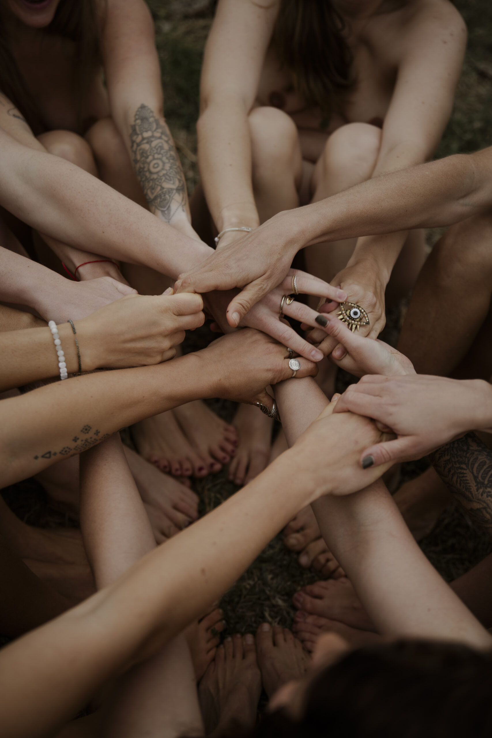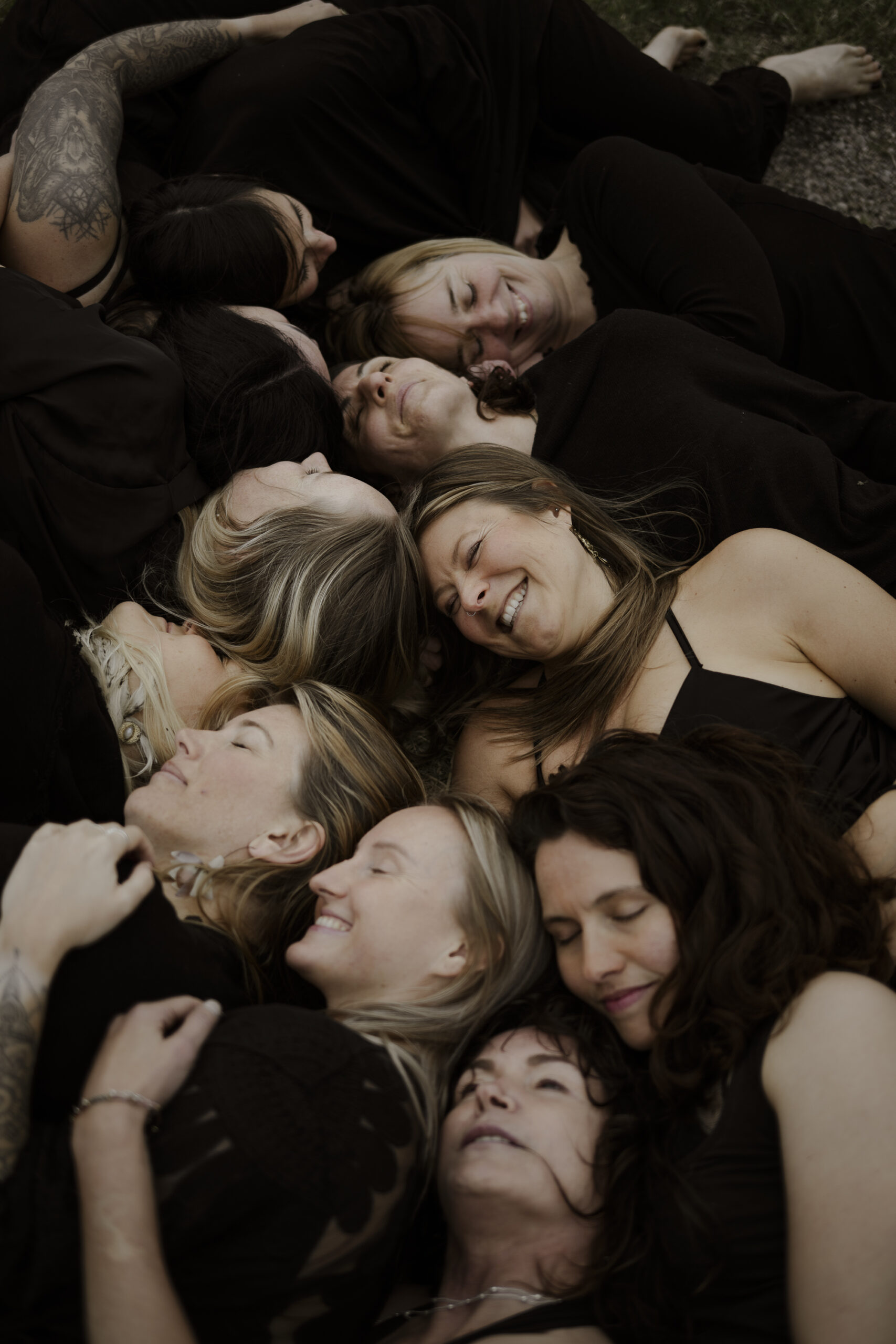 Du bist umgeben von einer Gruppe von Frauen, denen du vertraust.